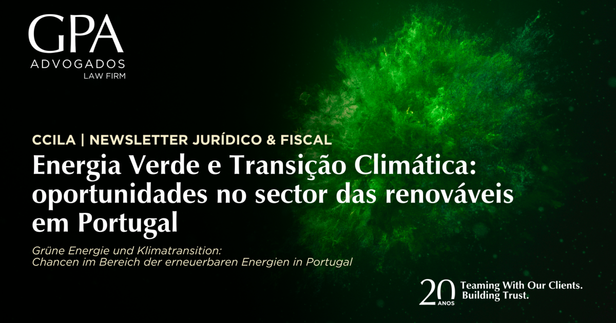 Clique AQUI para aceder ao artigo «Energia verde e transição climática: oportunidades no sector das renováveis em Portugal» (pág. 4), elaborado por Francisco Rodrigues Rocha e Clara Nolasco Lamas, respectivamente Sócio e Advogada Estagiária, que integram o German Desk da GPA.
